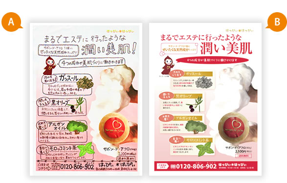 | 下の2つの原稿、あなたならどちらを手に取り、読みますか? 多くの方は、手書きの「A」ではないでしょうか。実は、この2つの内容は全く同じ。 |